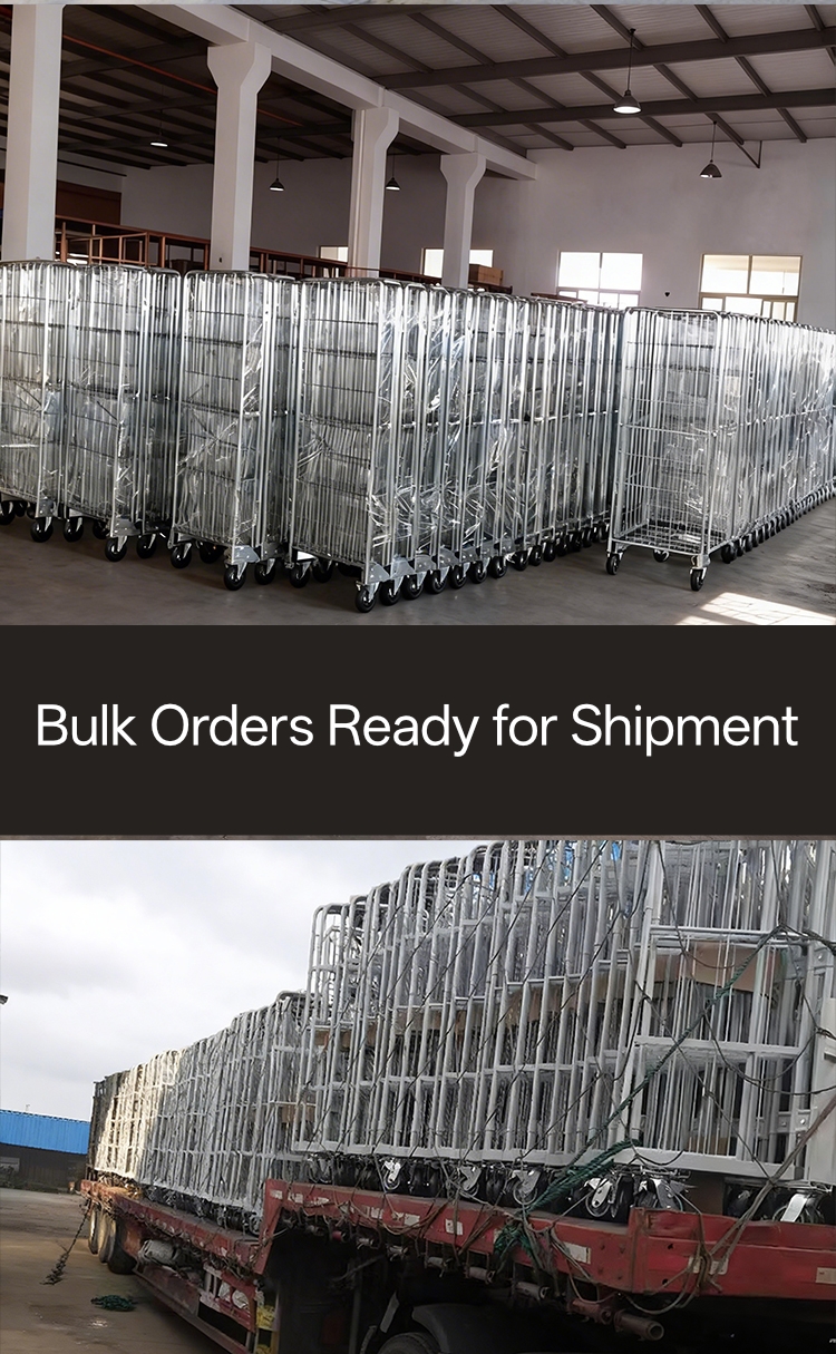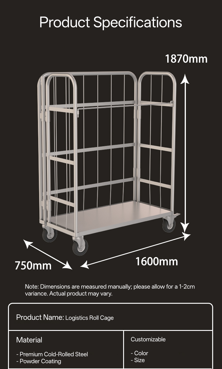 또한, 롤 케이지는 출고 및 트럭 적재에 필수적이며, 대량 화물 운송에 안전하고 안정적인 방법을 제공합니다. 표준화된 1600mm x 750mm x 1870mm 크기는 대부분의 표준 상용 차량과의 호환성을 보장하여 창고에서 최종 배송 허브까지 물류 체인을 효율화합니다.
