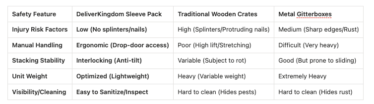 그만큼 DeliverKingdom 안전 제일 슬리브 팩 이 시스템은 무거운 나무 상자나 날카로운 모서리가 있는 금속 용기와 같은 기존 산업 포장과 관련된 내재적 위험을 완화하도록 설계되었습니다. 많은 창고 운영 업체는 나무 조각, 튀어나온 못, 그리고 접을 수 없는 무거운 장비를 다루는 데 따르는 육체적 부담으로 인해 보험료가 상승하고 인력 손실이 발생하는 문제에 직면해 있습니다. 이 시스템은 이러한 안전 문제를 해결하기 위해 다음과 같은 요소를 활용합니다. 가볍지만 강도가 높은 폴리머 매끄럽고 가시가 없는 마감 처리가 되어 있습니다. 인체공학적 드롭 도어 디자인 이를 통해 작업자가 컨테이너 깊숙한 곳에서 물품을 꺼낼 때 몸을 과도하게 뻗거나 안전하지 않게 구부릴 필요가 없어지므로, 기업 수준 물류의 작업장 안전 점수와 운영 처리량이 직접적으로 향상됩니다.