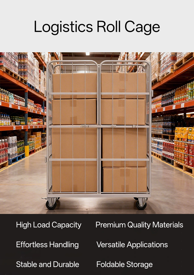 벌크백 물류에 적합한 850x650x1700mm 산업용 롤 케이지입니다. 곡물, 밀가루, 사료 등을 고밀도로 보관할 수 있도록 강화된 강철 구조로 제작되었습니다. 적층 가능하고 내구성이 뛰어나며, 글로벌 기업의 요구에 맞춰 맞춤 제작이 가능합니다.